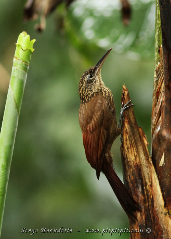 Nous voyons plusieurs oiseaux de la famille des Grimpars depuis le début… Ils sont tous brun-roux, avec des picots sur la tête… et c’est parfois difficile de les distinguer. Ici, le Grimpar cacao vient se placer JUSTE DEVANT NOUS et y reste pendant un gros deux minutes!!! Observation parfaite!
