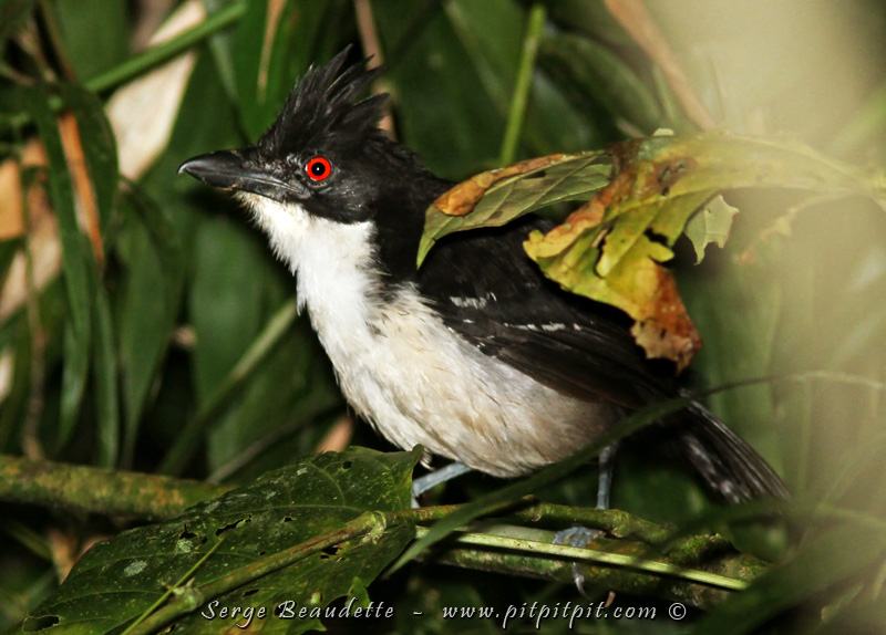 …MAIS… je vois aussi un mouvement subtil… calculé… un oiseau GROS et contrasté… mais qui sait se déplacer discrètement… Heureusement, ce Grand Batara est aussi curieux que je le suis et à chacun de mes sifflements, il fait un pas à découvert pour m’observer! C’est une rencontre TRÈS FORTE pour moi!!!!!! Je vois vraiment toute une personnalité chez cet oiseau… et j’ai la forte sensation qu’il se’est créé un lien… éphémère mais bien là! …En plus, c’est mon PREMIER « lifer » du voyage (première mention à vie!) UN VRAI CADEAU qui semble m’avoir été destiné puisque malgré mes tentatives convaincus de le montrer aux autres voyageurs, peu d’entre eux ont pu le voir (il n’était pas plus loin mais avait adopté à nouveau son comportement d’espion!) …et, quand j’y suis retourné seul, il a recommencé avec moi! FASCINANT, je vous jure!!!