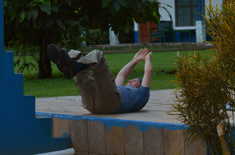Nous revenons au lodge et il ne reste que 30 minutes de lumière. En allant vers ma cabine, je suis attiré par un mouvement presque à la porte de ma chambre… c’est un Tohi à bec orange!