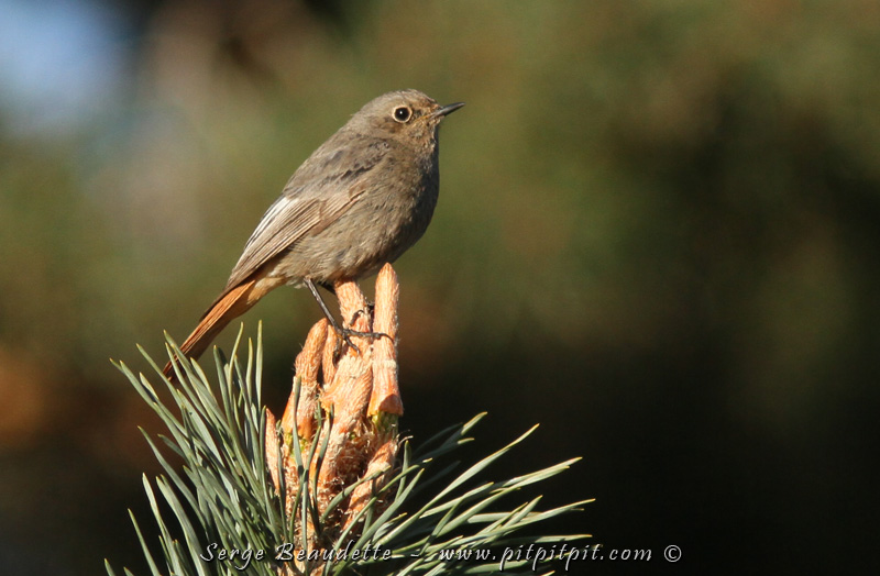 …Mais avant de quitter les habitats d’altitude, nous ferons un court arrêt pour tenter de voir un peu mieux et permettre à ceux qui l’ont manqué, le Venturon montagnard qui ne brillera pas de tous ses feux mais plutôt, il brillera par son absence! …Ça en prend des fois… et dans ce voyage, les espèces « pas trop bien vues » ou « pas vues du tout » sont de très rares exceptions! …On ne s’en formalise pas trop donc quand ça arrive! En revanche, nous aurons des coups d’œil remarquables sur des espèces vues auparavant, que nous sommes toujours bien heureux de revoir, comme le splendide Rouge-queue noir!