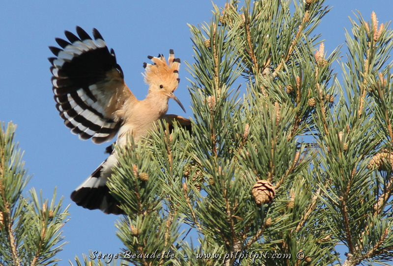 Cet arrêt me permettra aussi de prendre mes plus belles photos de l’impressionnante Huppe fasciée!!! Cet oiseau que nous avons vu chaque jour, souvent de très loin et encore plus souvent, en vol, rapidement!!! C’est tellement un oiseau aux contrastes et au patron de plumage unique, voyant, particulier, même la forme de ses ailes, la forte huppe,… elle est difficile à manquer mais elle est très farouche et ne se laisse ni approcher ni photographier facilement!