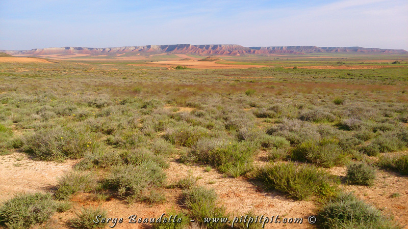 Ce matin, nous avons une longue route à faire vers notre dernière région… les plaines protégées de la région de Belchite! Ces plaines abritent les seules populations de toute l’Europe du TRÈS TRÈS RARE Sirli de Dupont, une petite alouette très menacées dont les effectifs sont évalués à au plus 200 COUPLES dans le Monde!!!