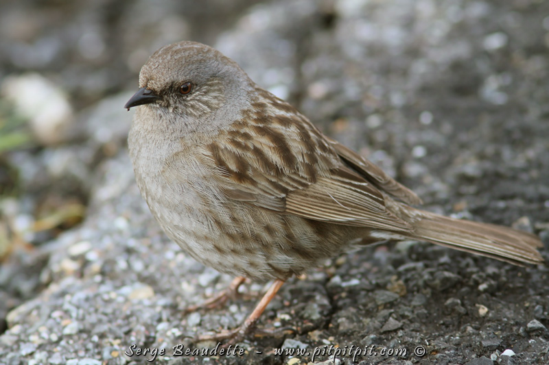 À mon « retour » de mes rêveries, je demande à Vincent: « Si tu revois un Accenteur mouchet, je l’ai manqué en connaissance de cause tout à l’heure… mais je ne veux pas qu’on ralentisse le groupe pour ça! » Je n’ai même pas fini ma phrase qu’un Accenteur vient littéralement se poser à mes pieds sur l’asphalte du stationnement!!!!!!!