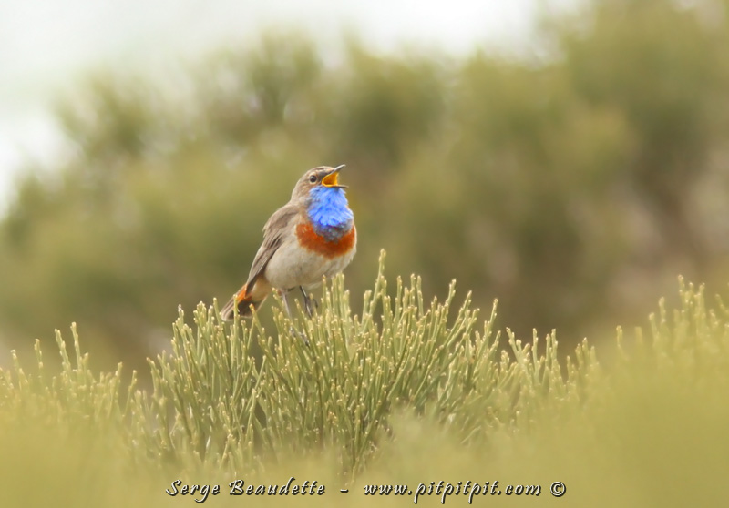 C’était l’objectif du jour et Pierre nous l’a trouvé beaucoup plus près que ça aurait du, ce qui nous a fait épargner du temps et un bon 2 kilomètres de marche aller-retour! Un MAGNIFIQUE mâle du GORGEBLEUE À MIROIRS!!!! QUEL OISEAU!!!!!