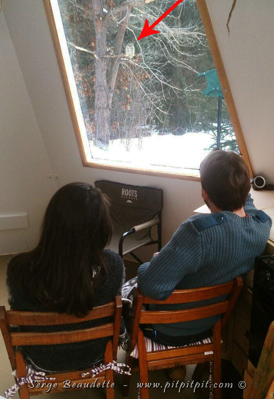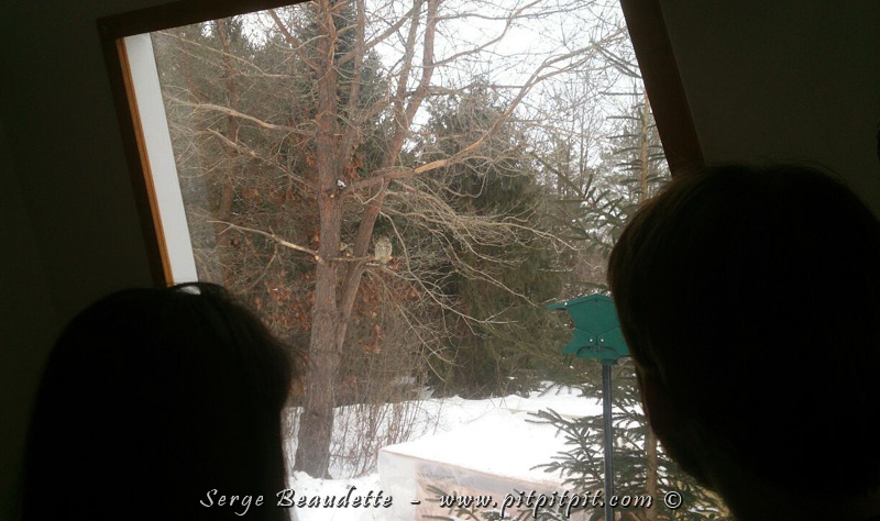 devant la porte patio, quand la Chouette lapone