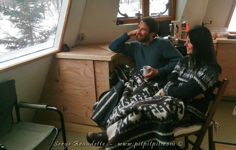 Nous sommes dans une admiration et une contemplation sans fin… confortablement assis, au chaud, café à la main et enroulé dans une grosse « doudou » en laine d’alpaga! Bien mieux que le cinéma!