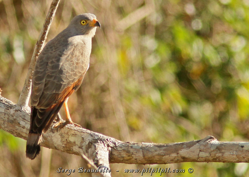 …Et d’autres rapaces diurnes, comme cette Buse à gros bec! Si nous traduisions son nom anglais de Roadside Hawk, nous pourrions l’appeler la Buse de l’accotement, ce serait original! …S’cusez… ça doit être la chaleur!