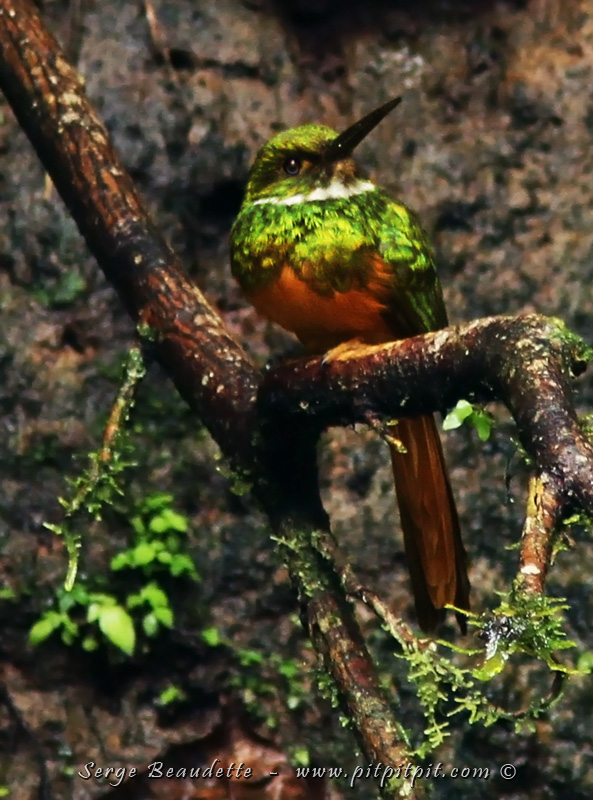 Moitié colibri, moitié martin-pêcheur, le Jacamar à queue rousse fait partie d’une famille qui lui est propre!!! Il se laisse admirer aussi et lance son cri très fort!