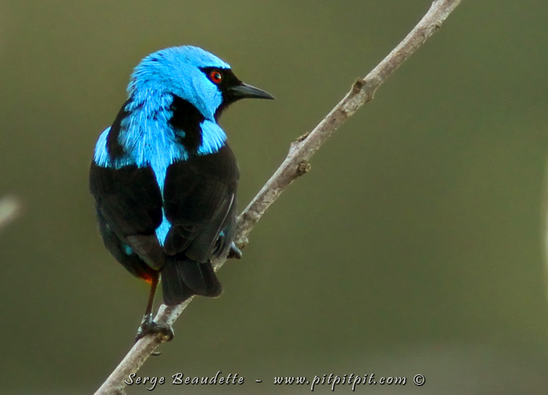 SURPRISE!!! Toujours sur le terrain du lodge, aux premières lueurs, cet EXTRAORDINAIRE Dacnis aux cuisses rouges!!! J’avais toujours vu cet oiseau un bref instant et de loin… (on entrevoit d’où lui vient son nom!)