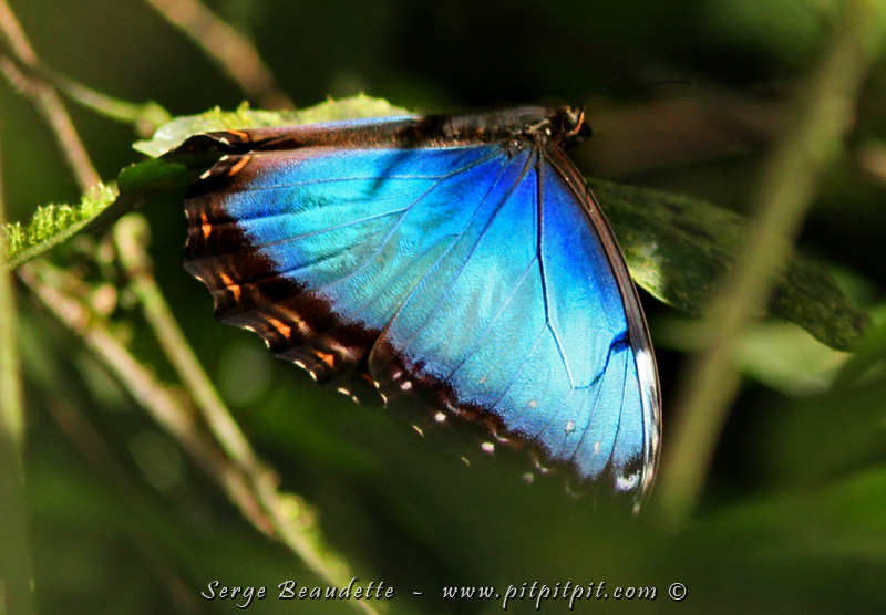 C’est aussi dans cette riche forêt, en contre-bas d’un ruisseau, dans l’alternance de la lumière et de l’ombre que nous pourrons contempler quelques grands « Papillons bleus » (Morphos bleu) Ça éclair presque la forêt!!!