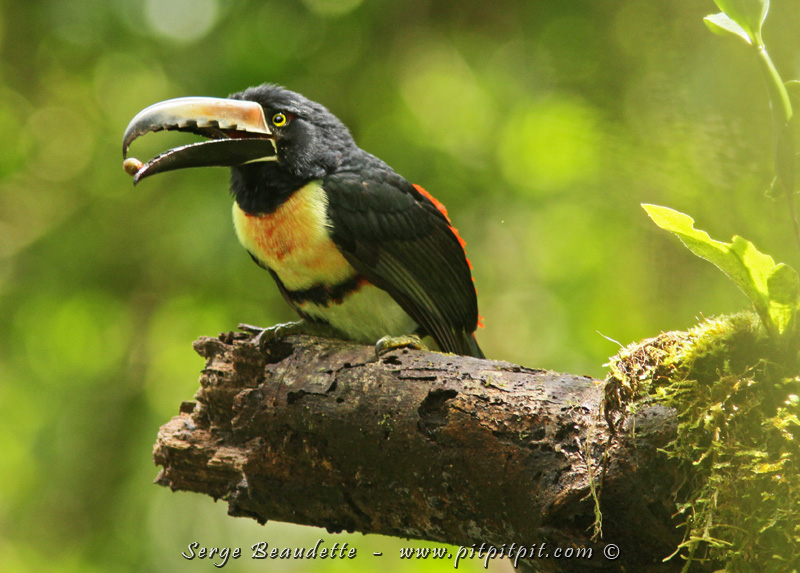 Plus forestier celui-là, l’Araçari à collier! Un petit toucan!!! Le premier que l’on voit du voyage mais nous en verrons d’autres!!!! Il se laisse admirer longtemps à notre grand bonheur!!!