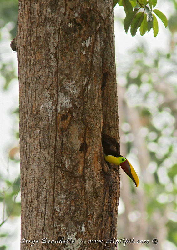 Tout près, nous découvrons… un nid… de TOUCAN!!!! Un beau Toucan tocard, le plus gros ici, y a élu domicile!