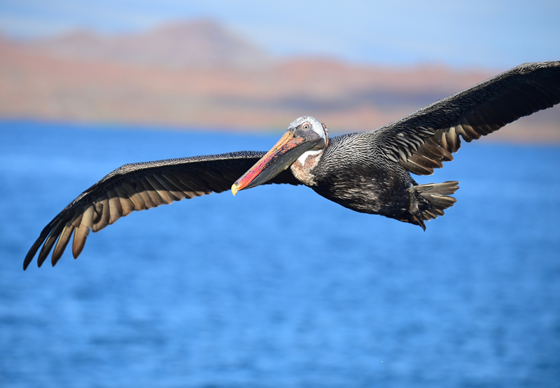 Ici et ci-dessous, je mets à l’honneur quelques photos de Luc Simard, participant au voyage, illustrant quelques oiseaux omniprésents durant le voyage, comme le gigantesque Pélican brun qui agrémente nos observations en mer ou à terre! (Merci Luc!)