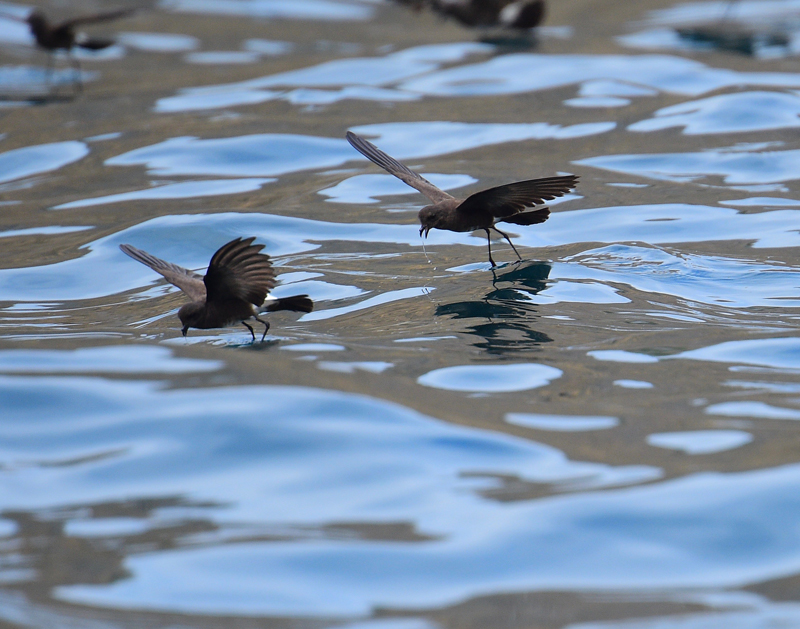 Bien sûr, les Océanites d’Elliot, qui volent derrière le bateau en quasi-permanence… sans se poser et en patinant avec leurs longues pattes pour effleurer à peine la surface! Leur cousin, l’Océanite téthys, ne sera vu qu’au large, à quelques reprises. (Photo: Luc Simard)