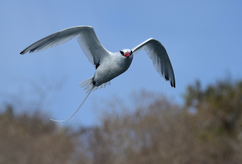 Moins commun, mais vu à quelques reprises durant 4 de nos 8 jours en mer, le très attendu et très élégant Phaéton à bec rouge, avec sa queue filifère disproportionnée, ses motifs contrastants noirs et blancs et son bec rouge vif! (Photo: Luc Simard)
