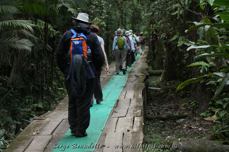 Ensuite, 30 minutes à pied sur des passerelles de bois bien aménagées (pendant que des porteurs s’occupent de nos bagages)…