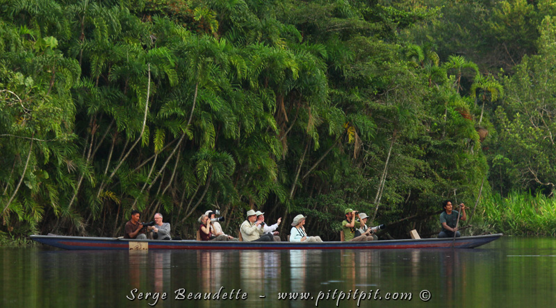 À cet endroit, il y a tout de l’Amazonie, tel que décrit hier : le fleuve, les colpas (falaises d’argile), les forêts primaires et secondaires, les forêts inondées, les lagunes d’eaux noires, … et, bien sûr : la tourde canopée!
