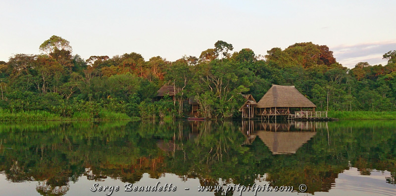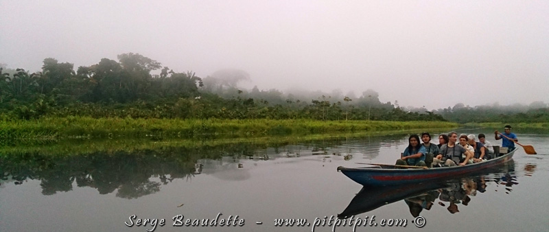 …À 120 km de pirogue de la ville la plus proche!!! Ce sont les guides indigènes, les meilleurs de tout le pays, qui rament en identifiant, en nous montrant et en imitant les oiseaux! Ils connaissent toutes les 600 espèces de leur vaste territoire, tous leurs cris et tous leurs chants!