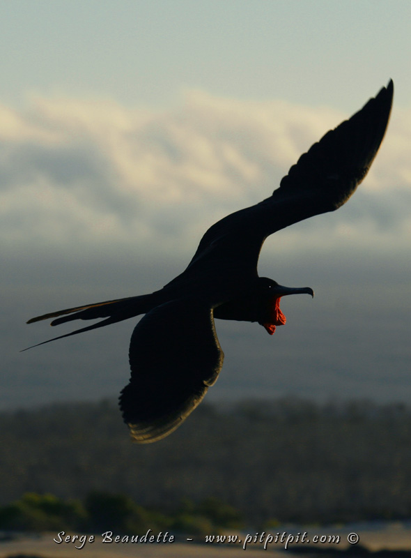 Les Frégates superbes suivront le bateau durant TOUS nos déplacements!!! Ces pirates géants de la mer accompagneront les voyageurs dans leurs rêveries, en volant CONTRE le vent, à 30 km/h, sans un seul battement d’aile!!!