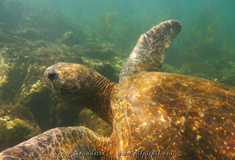 ET! Les Tortues de mer!!!!!!! Mes amies de toujours! Les « oiseaux » de la mer… avec leurs grandes « ailes » qui battent au rythme lent des mouvements des plantes qui dansent, poussées par les courant marins… Les suivre à 1 mètre ou 2 est une méditation…